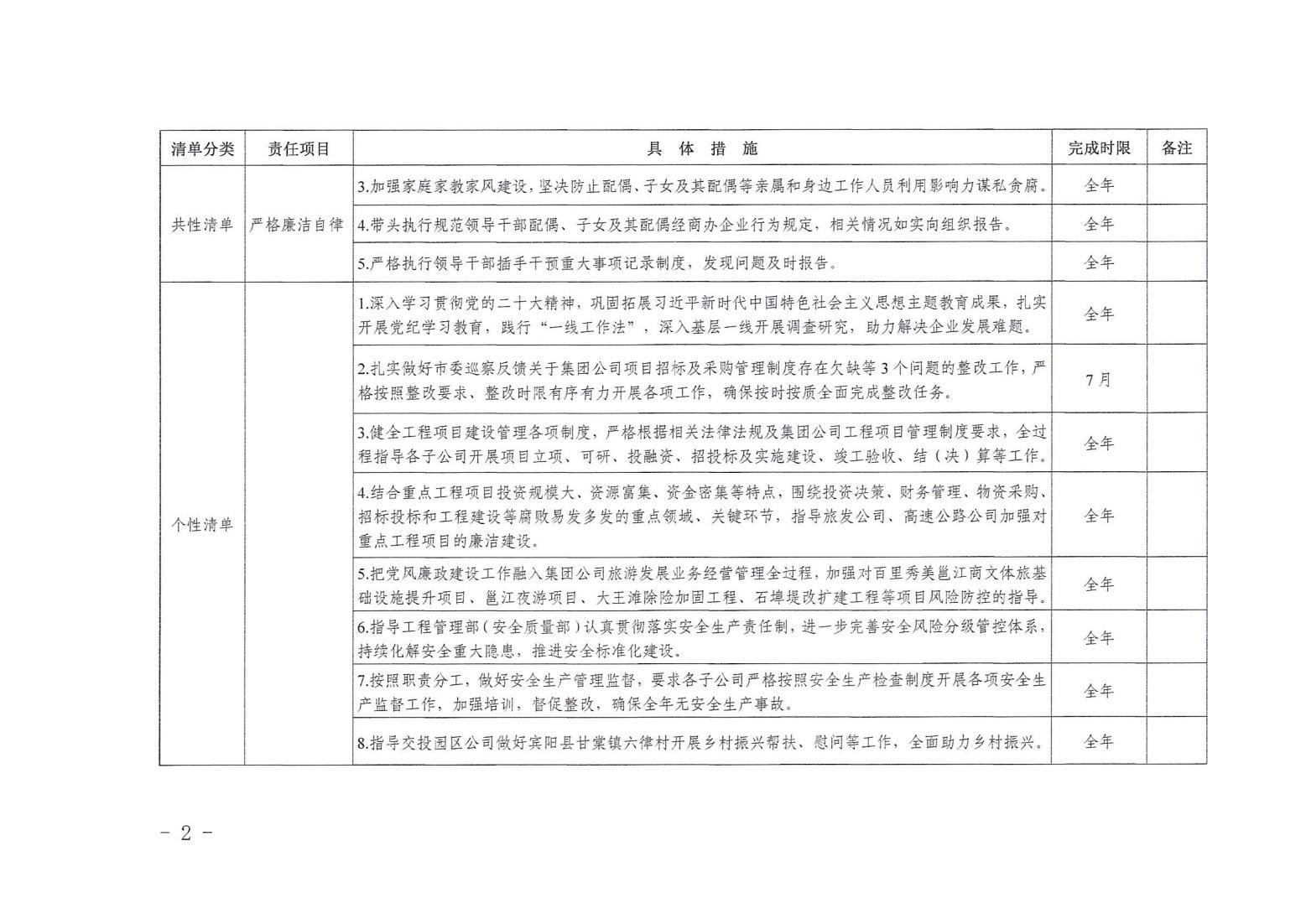 領導班子其他成員2024年度黨風廉政建設“一崗雙責”清單(二)