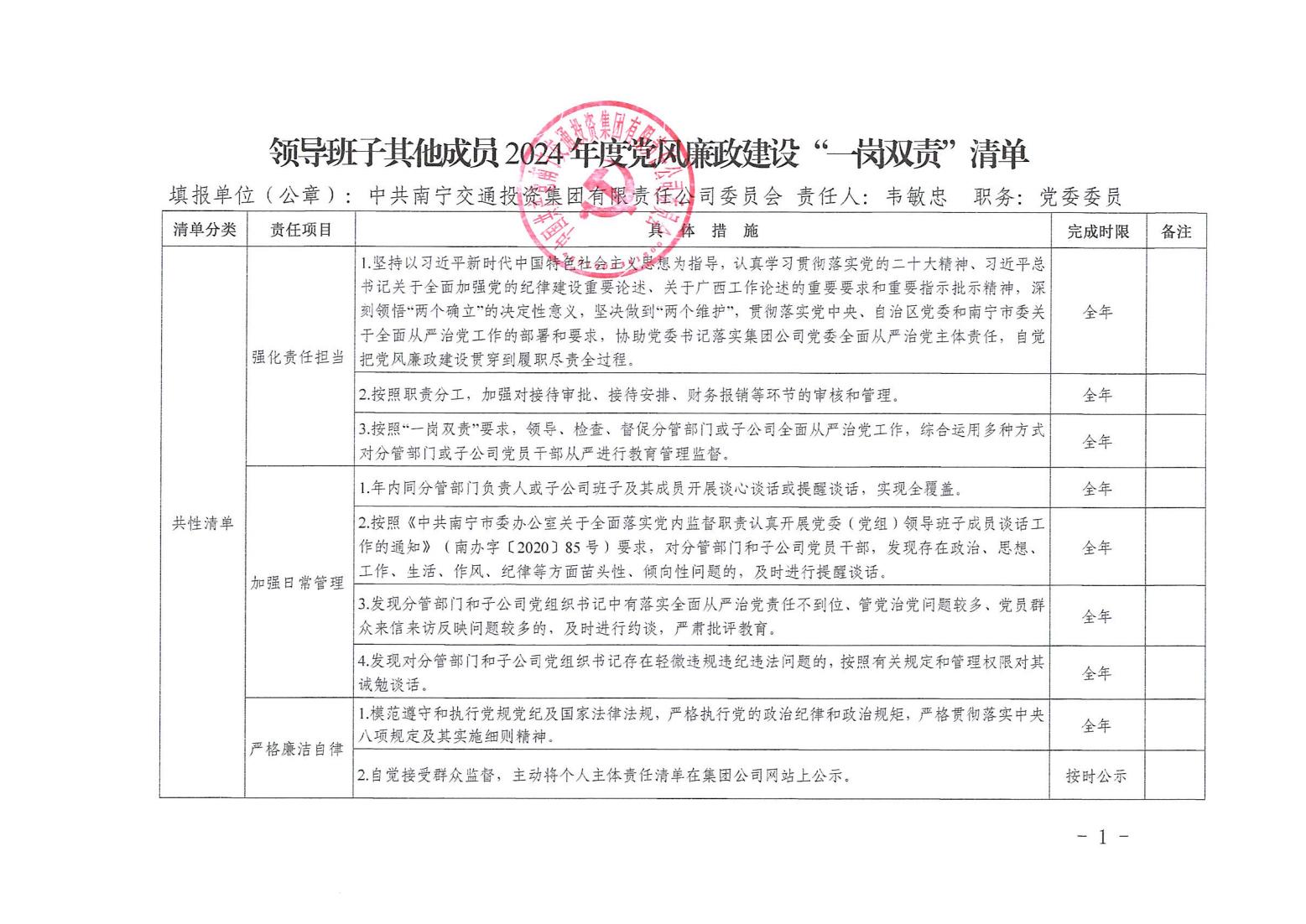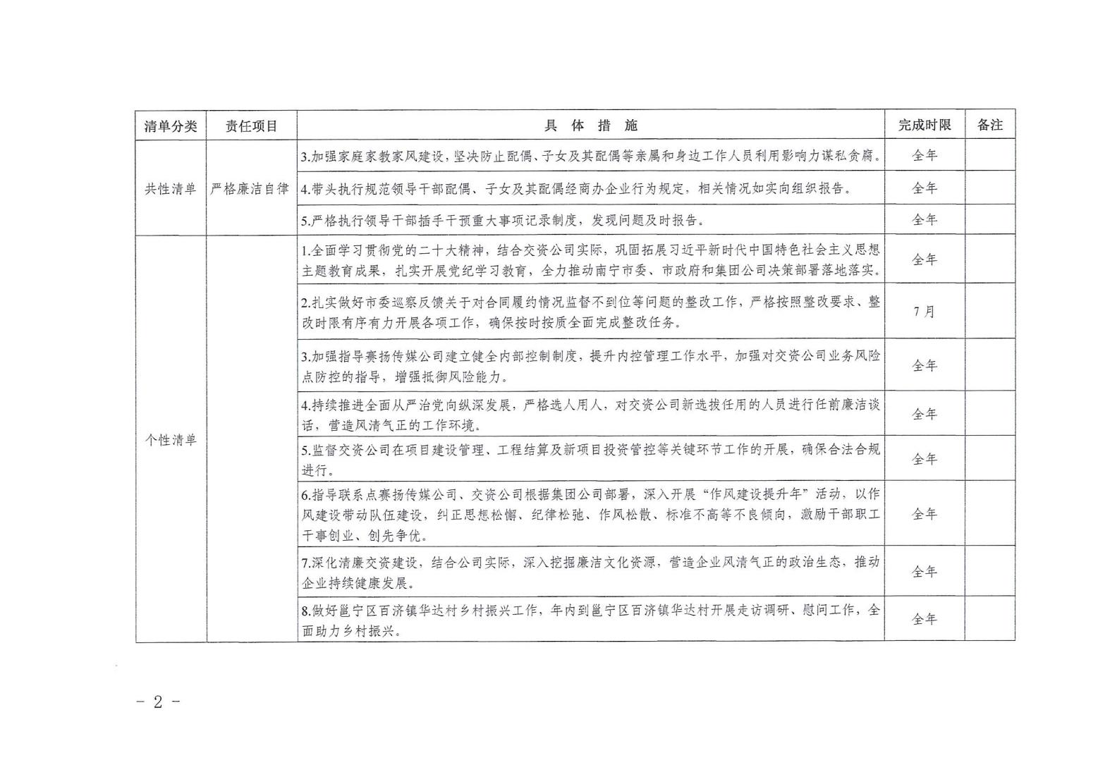 領(lǐng)導(dǎo)班子其他成員2024年度黨風(fēng)廉政建設(shè)“一崗雙責(zé)”清單(八)