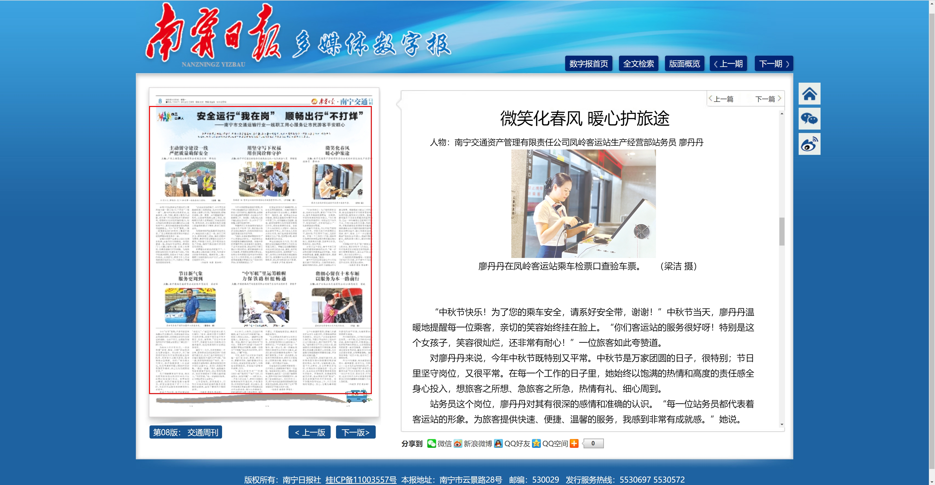 微笑化春風 暖心護旅途 人物:南寧交通資產(chǎn)管理有限責任公司鳳嶺客運站生產(chǎn)經(jīng)營部站務員 廖丹丹